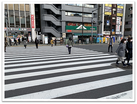 ②橋を渡って、横断歩道を渡り右に曲がります。