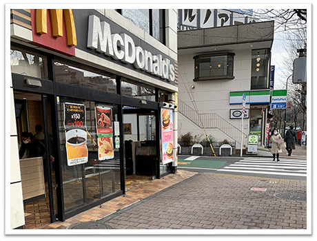 ③左手にマクドナルドが見えたら、その角を左に曲がります。