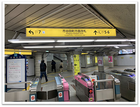 ①市ヶ谷田町方面改札を出て6番出口に向かいます。