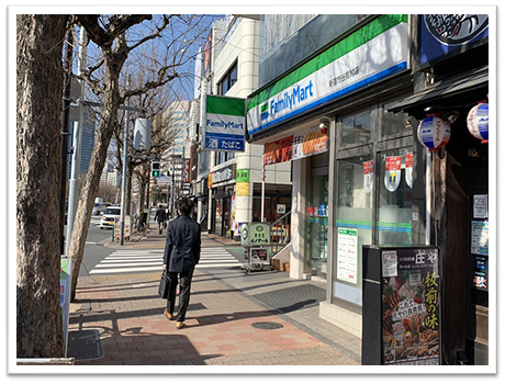 ③右手にファミリーマートが見えたら、その角を右手に曲がります。