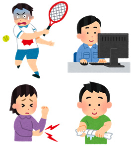 日常生活の手作業やテニス、卓球、バドミントン、ゴルフで起こりやすいです。