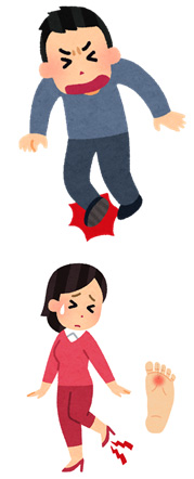 原因としてハイヒール長時間履いていたり、立ち仕事をしていたり、スポーツで足の指を反る体勢が長く続くことによって起こります。また、足の外側に体重がかかるような立ち方、歩き方が続くことによって起こりやすくなります。