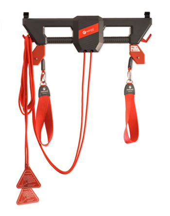 天井から吊るされたレッドコードを利用して身体の様々な部分を支えたり、時には負荷を与えたりと、ストレッチや筋力増強をより効果的に行える機材です。